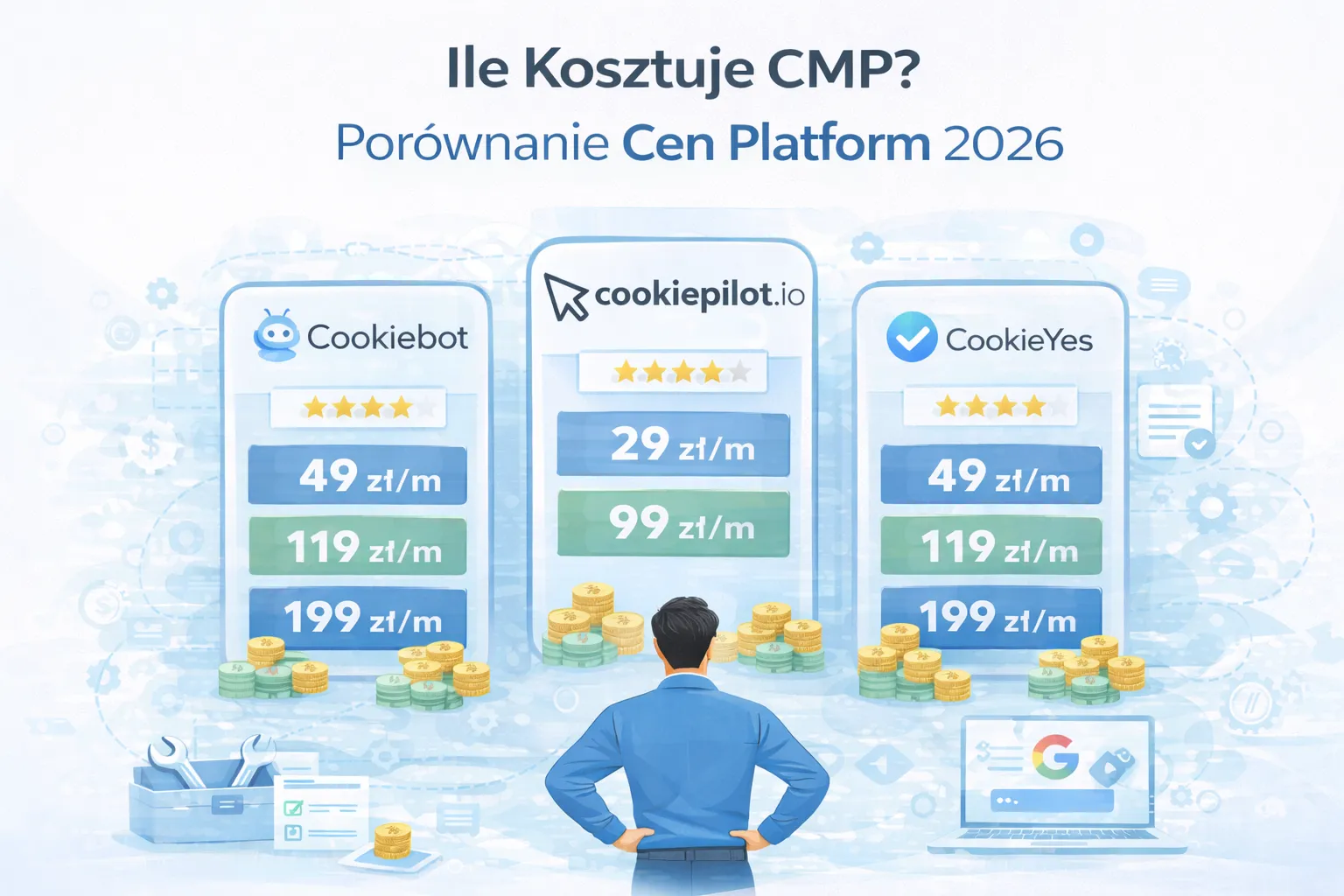 W tym artykule porownujemy realne koszty 6 platform CMP dostepnych w Polsce w 2026 roku: Cookiebot, CookieYes, consentmanager, Piwik PRO, OneTrust i CookiePilot. Podajemy konkretne kwoty w EUR i PLN, zeby moc porownac jabka do jabek.
